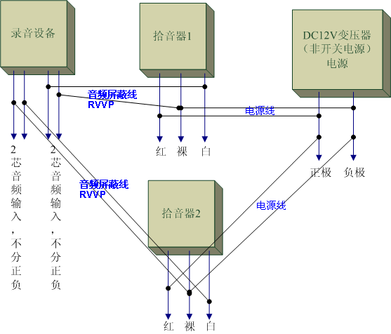 STLAN錄音設(shè)備與拾音器連線示意圖