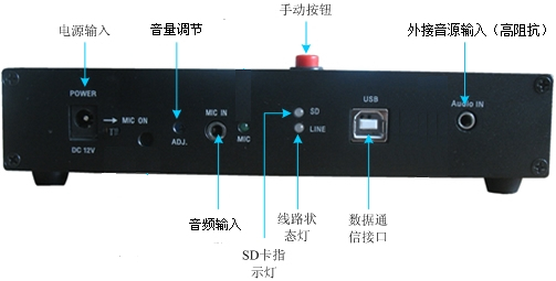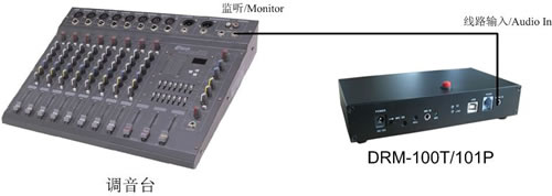 DRM-100T數字錄音設備適合具有會議系統(tǒng)的會場,從各種會議系統(tǒng)(調音臺等)的音頻輸出(帶前置放大)獲取模擬信號音,DRM-100T是DRM-101P的簡化版,去除了外錄功能。