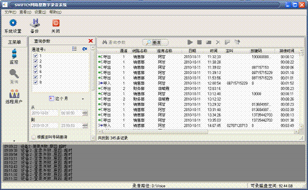 ◇ 可以設(shè)置各個通道的允許錄音時段;可以設(shè)置禁止錄音的電話號碼